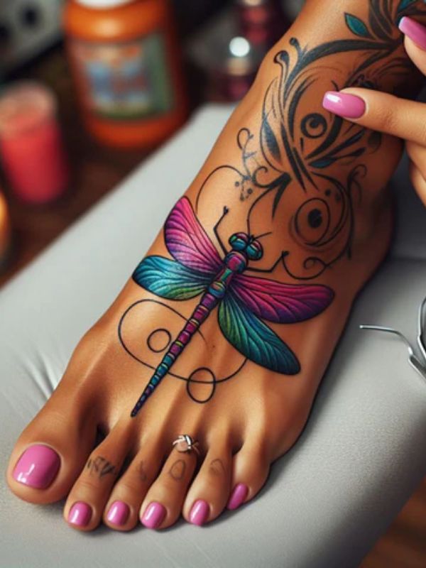 Dragonfly Foot Tattoo
