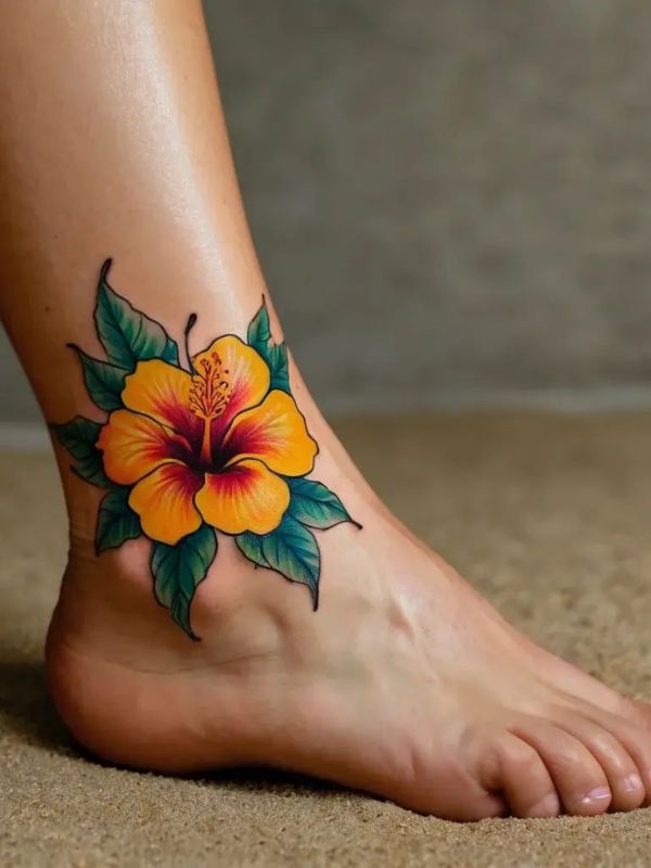 Hibiscus Foot Tattoo